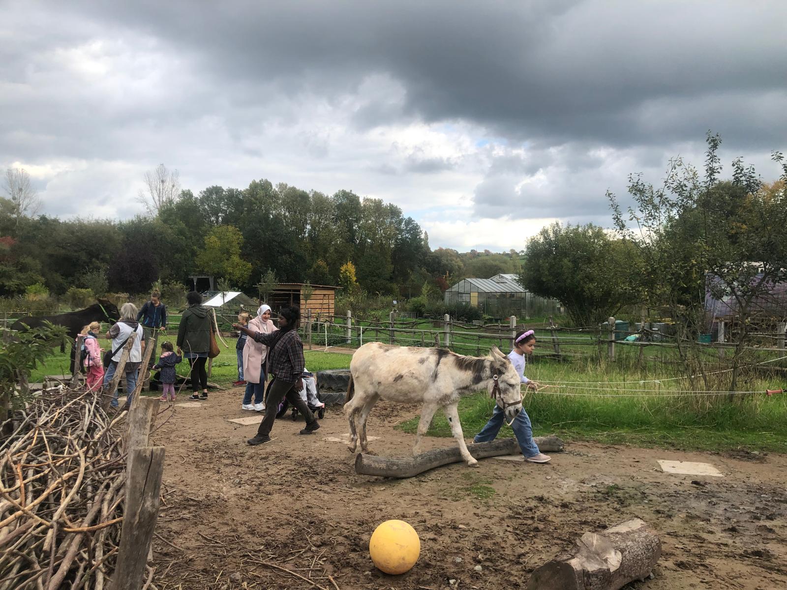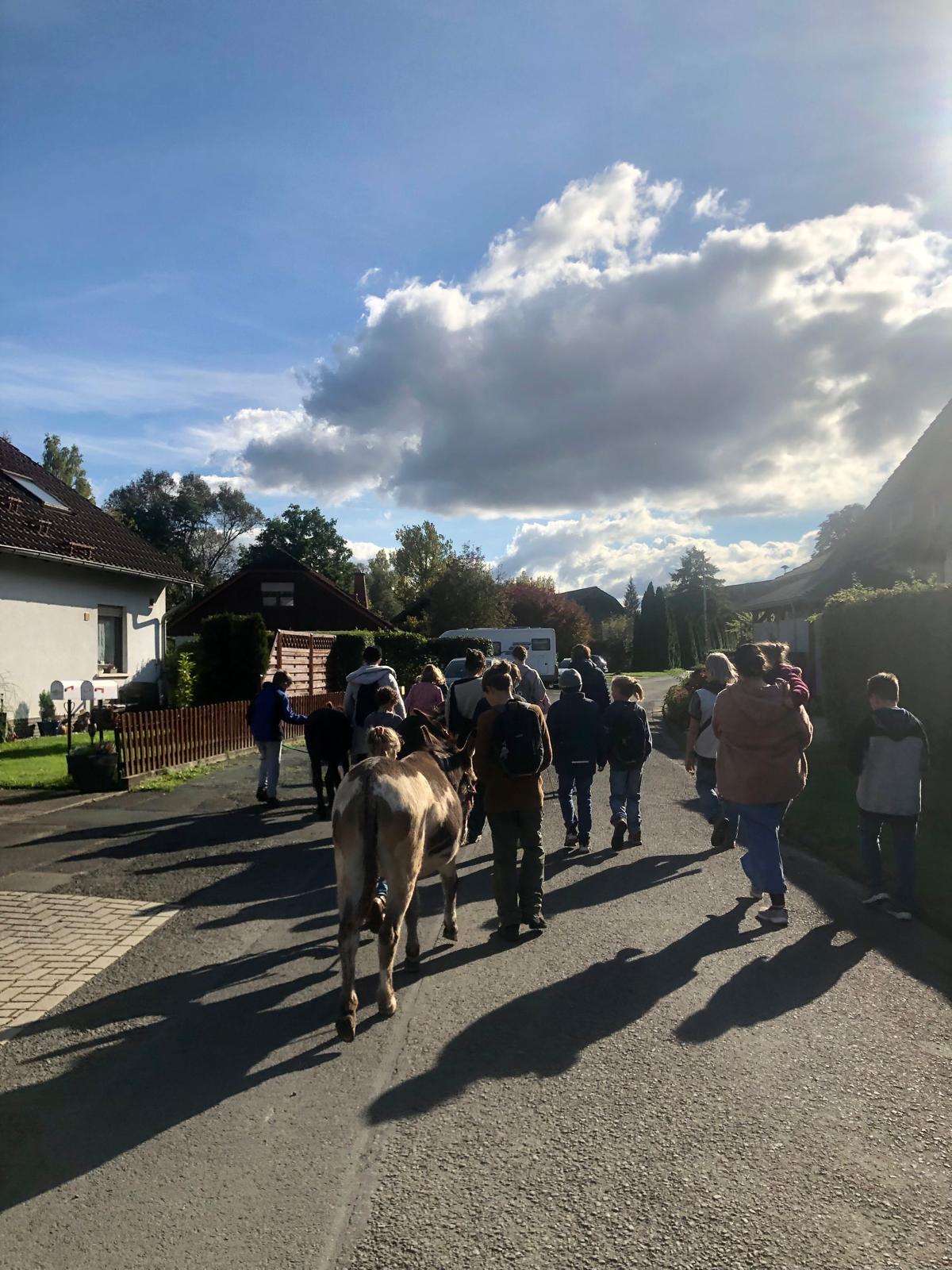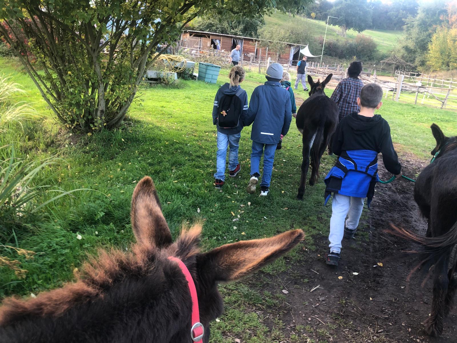 Auf dem Hof Fleckenbühl in Cölbe durften wir einen Nachmittag lang mit Eseln wandern! Erst machten wir uns gemeinsam bekannt und vertraut, durften striegeln, Probeführen und durch den Parcours laufen. Danach wanderten wir eine Runde durchs Dorf. Im Anschluss wartete auf die Esel Futter und auf uns der Spielplatz, Waffeln und ebenfalls Möhren und Äpfel! Es war ein sehr schöner und gelungener Herbstnachmittag und hat uns allen viel Freude bereitet.